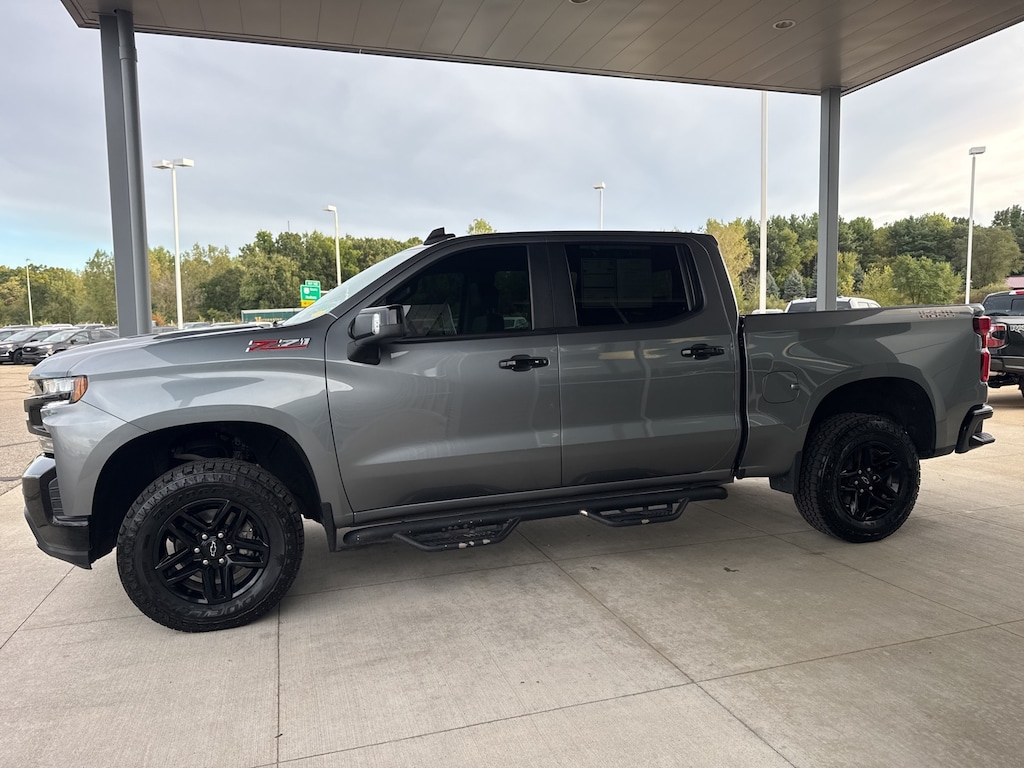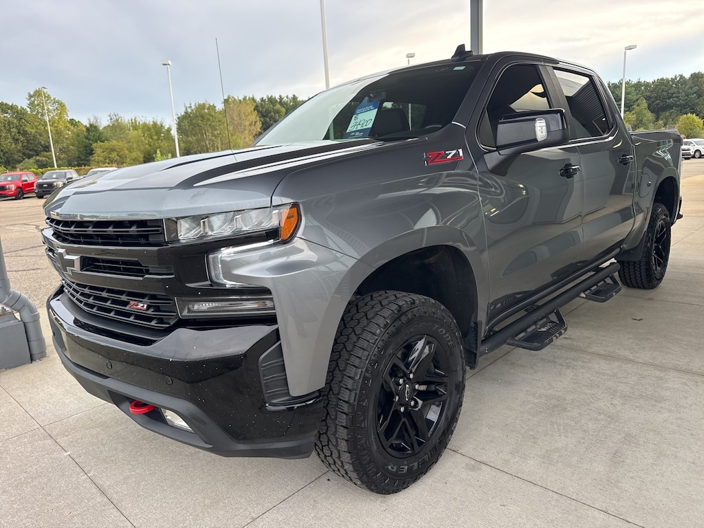 Certified. Satin Steel Metallic 2021 Chevrolet Silverado 1500 LT Trail Boss 4WD 10-Speed Automatic EcoTec3 5.3L V8 10-Speed Automatic, 4WD, Black Leather, 10-Way Power Driver Seat w/Lumbar, 12-Volt Rear Auxiliary Power Outlet, 120-Volt Bed Mounted Power Outlet, 120-Volt Instrument Panel Power Outlet, 170 Amp Alternator, 2 USB Ports, 2 USB Ports (First Row), 4.2" Diagonal Color Display Driver Info Center, 4G LTE Wi-Fi Hot Spot Capable, 6-Speaker Audio System, All-Weather Floor Liner (LPO) (AAK), Auto-Locking Rear Differential, Auxiliary External Transmission Oil Cooler, Bed Protection Package, Bluetooth® For Phone, Chevrolet Connected Access Capable, Chevytec Spray-On Black Bedliner, Cloth Rear Seat w/Storage Package, Color-Keyed Carpeting Floor Covering, Compass, Convenience Package II, Convenience Package w/Buckets Seats, Deep-Tinted Glass, Dual Exhaust w/Polished Outlets, Dual-Zone Automatic Climate Control, Electric Rear-Window Defogger, Electrical Lock Control Steering Column, Electronic Cruise Control, Electronic Stability Control, EZ Lift Power Lock & Release Tailgate, Floor Mounted Center Console, Front LED Fog Lamps, HD Radio, HD Rear Vision Camera, Heated Driver & Front Outboard Passenger Seats, Heated Steering Wheel, Heavy-Duty Air Filter, High Gloss Black Grille, High Gloss Black Mirror Caps, Hill Descent Control, Hitch Guidance, Keyless Open & Start, Lane Change Alert w/Side Blind Zone Alert, Leather Package, Leather Wrapped Steering Wheel, Leather-Appointed Front Seat Trim, LED Cargo Area Lighting, LED Reflector Headlamps, Manual Tilt/Telescoping Steering Column, OnStar & Chevrolet Connected Services Capable, Performance Red Recovery Hooks, Perimeter Lighting, Power Door Locks, Power Front Windows w/Driver Express Up/Down, Power Front Windows w/Passenger Express Down, Power Rear Windows w/Express Down, Power Sliding Rear Window w/Rear Defogger, Preferred Equipment Group 2LT, Premium Bose 7-Speaker Sound System, Radio: Chevrolet Infotainment 3 Plus System, Rear Cross Traffic Alert, Rear Dual USB Charging-Only Ports, Rear Vision Camera, Rear Wheelhouse Liners, Remote Vehicle Starter System, Safety Package, SiriusXM Radio, SiriusXM w/360L, Standard Tailgate, Steering Wheel Audio Controls, Suspension Package, Theft Deterrent System (Unauthorized Entry), Trailering Package, Ultrasonic Front & Rear Park Assist, Universal Home Remote, Up-Level Rear Seat w/Storage Package, Wireless Phone Projection.