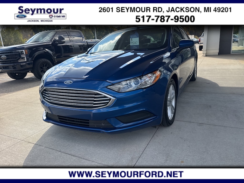 Certified. Lightning Blue 2018 Ford Fusion Hybrid SE FWD E-CVT Automatic I4 Hybrid I4 Hybrid, Equipment Group 600A.