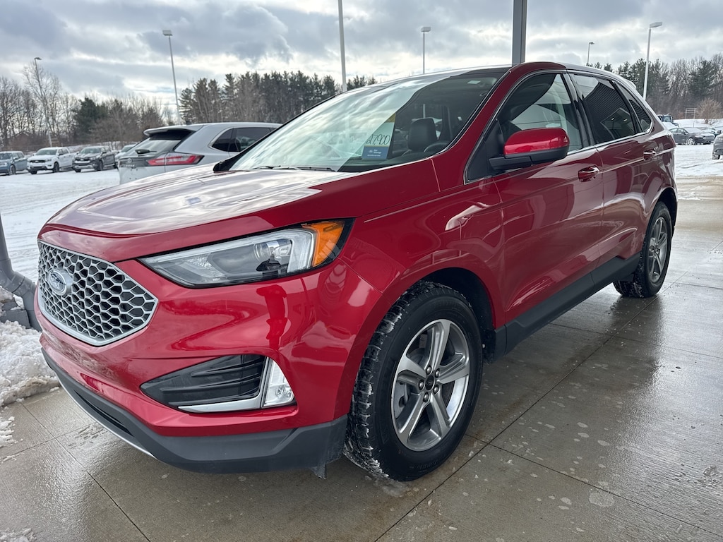 Certified. Rapid Red Metallic Tinted Clearcoat 2023 Ford Edge SEL AWD 8-Speed Automatic EcoBoost 2.0L I4 GTDi DOHC Turbocharged VCT AWD, 110V/150W AC Power Outlet, Convenience Package, Electronic Stability Control, Emergency communication system: SYNC 4 911 Assist, Equipment Group 201A, Fog Lamps w/Iconic Silver Bezel, Fully automatic headlights, Heated front seats, Panoramic Vista Roof, Perimeter Alarm, Power Liftgate, Power passenger seat, Remote Start System, Universal Garage Door Opener (UGDO), Wireless Charging Pad.