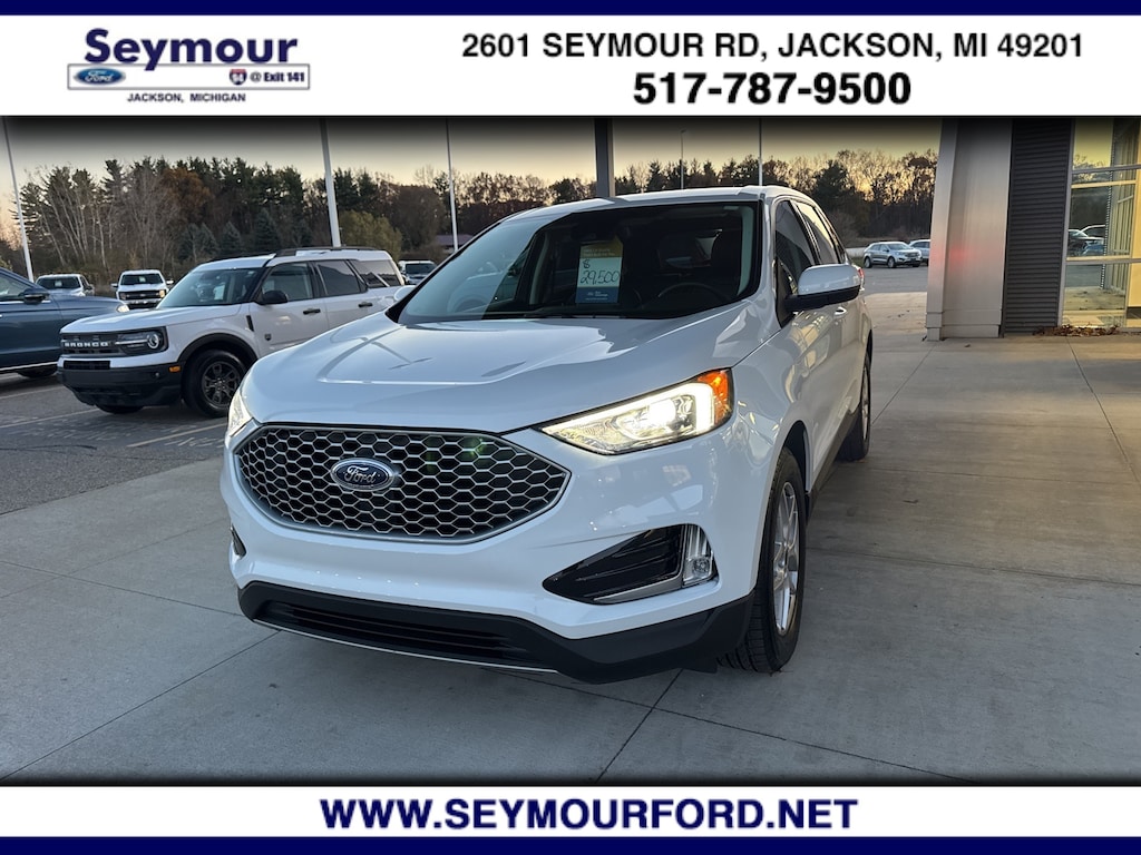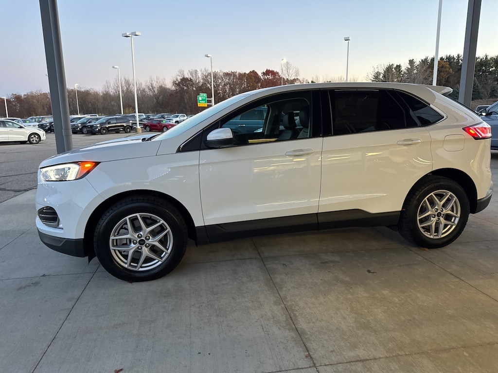 Certified. Oxford White 2023 Ford Edge SEL AWD 8-Speed Automatic EcoBoost 2.0L I4 GTDi DOHC Turbocharged VCT AWD, 110V/150W AC Power Outlet, Convenience Package, Emergency communication system: SYNC 4 911 Assist, Equipment Group 201A, Fog Lamps w/Iconic Silver Bezel, Heated front seats, Perimeter Alarm, Power Liftgate, Remote Start System, SYNC 4A w/Enhanced Voice Recognition, Universal Garage Door Opener (UGDO), Wireless Charging Pad.