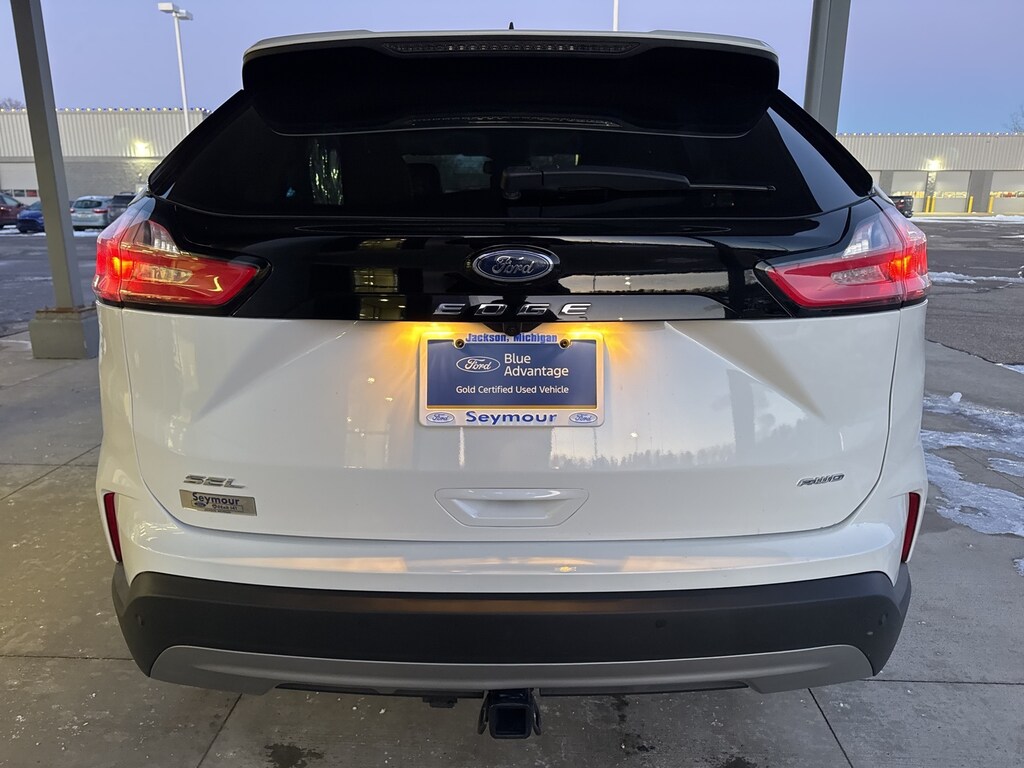 Certified. Star White Metallic Tri-Coat 2024 Ford Edge SEL AWD 8-Speed Automatic EcoBoost 2.0L I4 GTDi DOHC Turbocharged VCT AWD, 110V/150W AC Power Outlet, Class II Trailer Tow Package, Convenience Package, Emergency communication system: SYNC 4 911 Assist, Equipment Group 201A, Fog Lamps w/Iconic Silver Bezel, Heated front seats, Perimeter Alarm, Power Liftgate, Power passenger seat, Remote Start System, SYNC 4A w/Enhanced Voice Recognition, Universal Garage Door Opener (UGDO), Wireless Charging Pad.