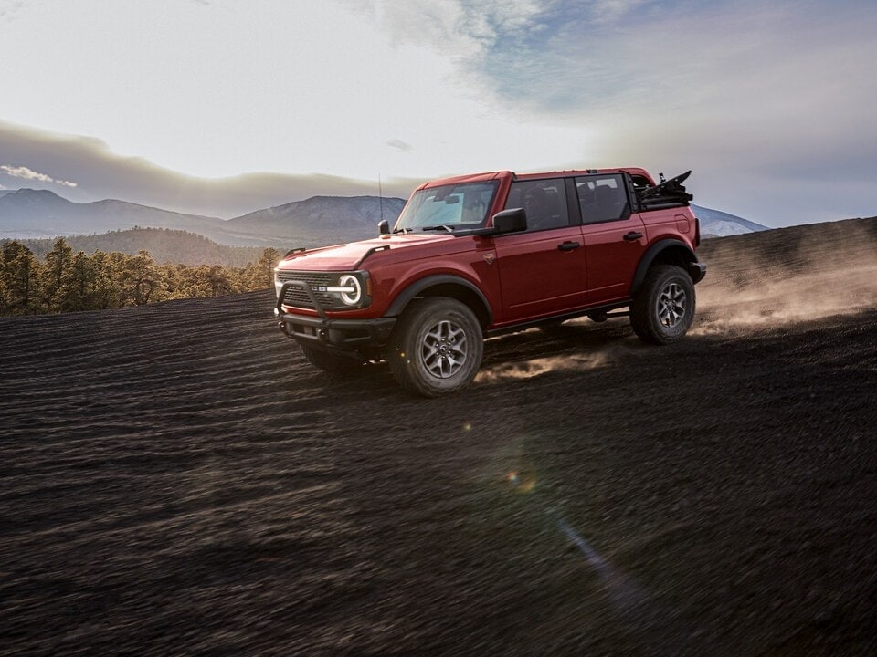 Features like an available heavy-duty modular front bumper and available steel bash plates let Bronco tackle truly unforgiving landscapes. The timeless design means it looks great doing it.