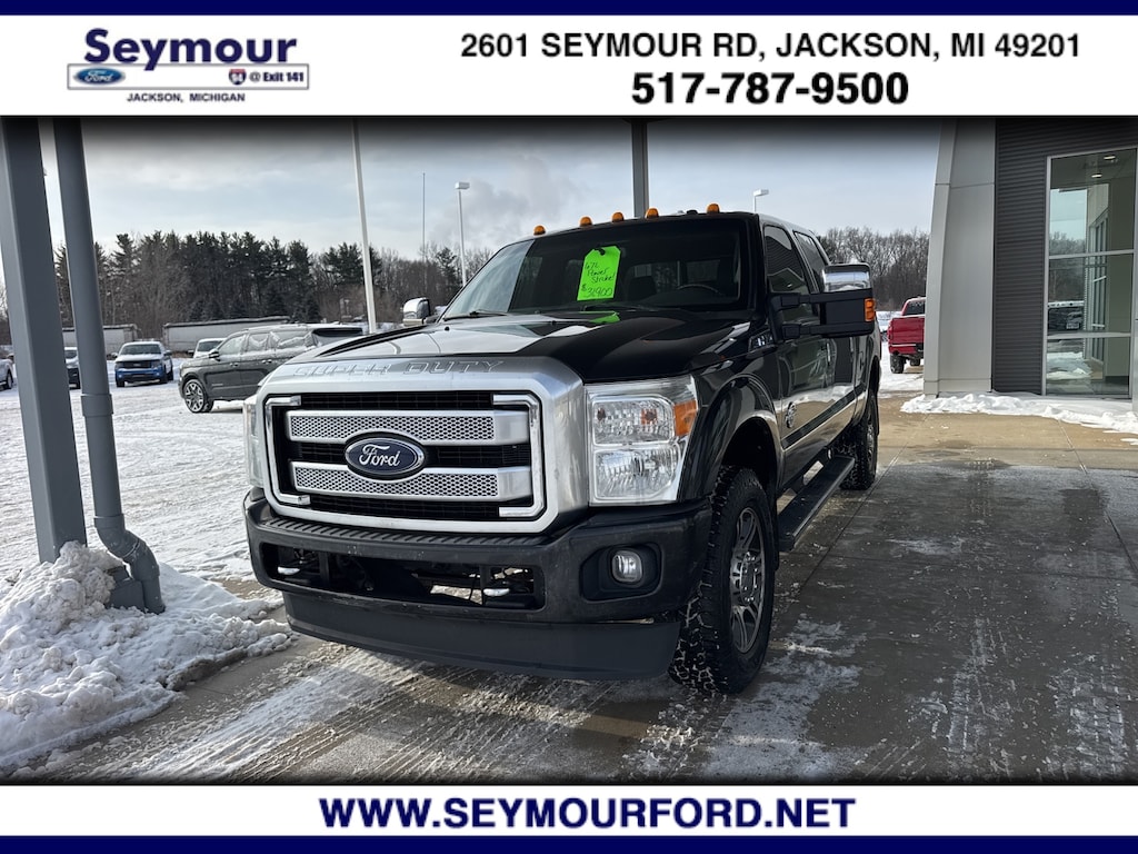 Tuxedo Black Metallic 2015 Ford F-350SD Platinum 4WD TorqShift 6-Speed Automatic Power Stroke 6.7L V8 DI 32V OHV Turbodiesel 4WD, 20" Platinum Cast Aluminum Wheels, 6" Angular Chrome Step Bars, Body-Color Front & Rear Bumpers, Bright Chrome Door & Tailgate Handles, Chrome Exhaust Tip, Chrome Skull Caps on PowerScope Mirrors, Console, Door Trim, Fully automatic headlights, Memory Power Adjustable Pedals, Order Code 618A, Platinum Package, Power passenger seat, Premium Leather-Wrapped/Wood Steering Wheel, Remote Start System, Tailgate Step & Handle, Unique Platinum Leather 40/Console/40 Seats, Unique Satin Chrome Grille, Universal Garage Door Opener, Voice Activated Navigation.
