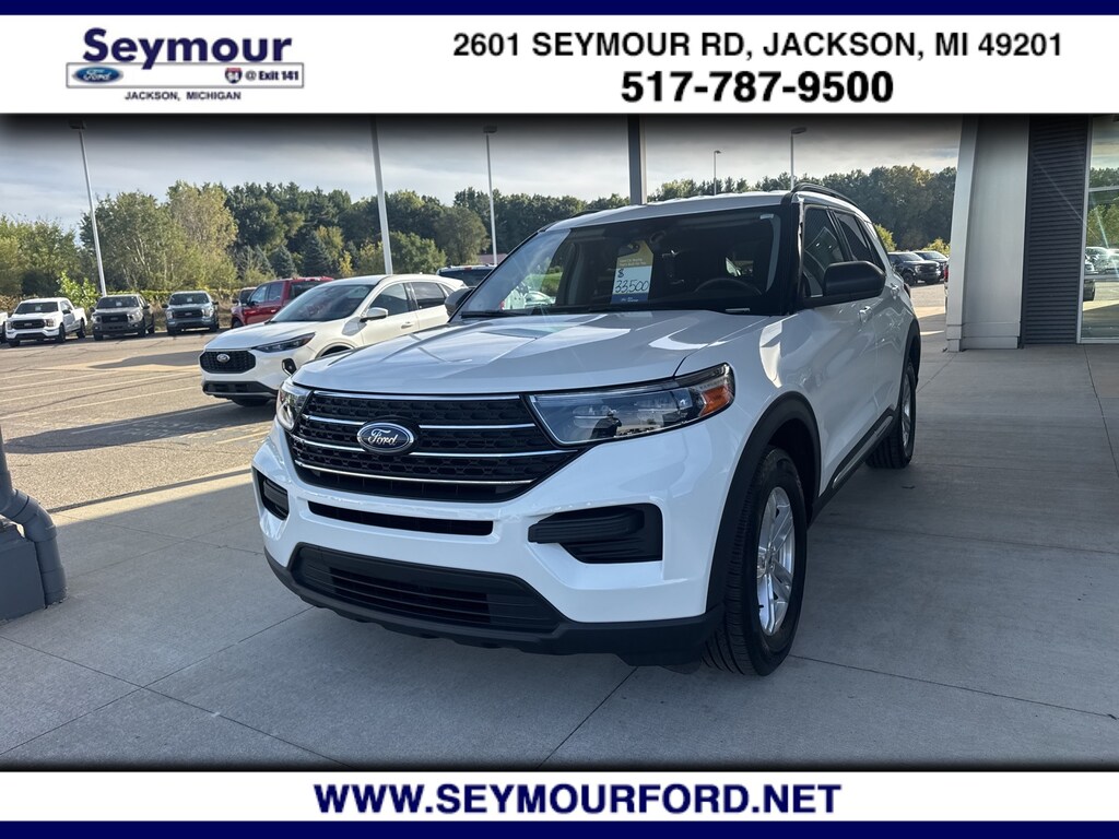 Certified. White Metallic 2023 Ford Explorer XLT 4WD 10-Speed Automatic 2.3L EcoBoost I-4 4WD, Electronic Stability Control, Emergency communication system: SYNC 3 911 Assist, Equipment Group 200A, Fully automatic headlights.