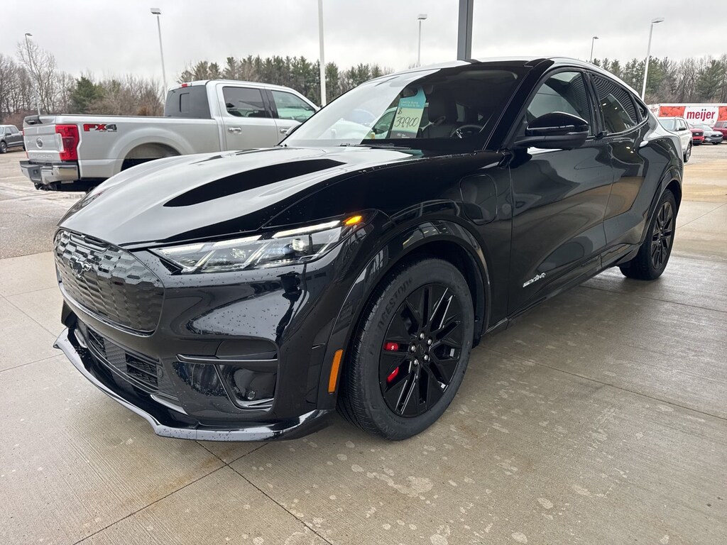 Certified. Shadow Black 2025 Ford Mustang Mach-E Premium AWD Single-Speed Automatic Dual Electric Motor Brembo Branded Front Brakes, Cellular Connectivity for Audio/Video Streaming, Electronic Stability Control, Emergency communication system: 911 Assist, Equipment Group 300A Standard Package, Ford Connectivity Package (One-Time Purchase), Fully automatic headlights, Heated front seats, Heated/Ventilated Perforated ActiveX Bucket Seats, Internet access capable: FordPass Connect, Navigation system: Connected Navigation, Panoramic Fixed-Glass Roof, Power Liftgate, Power passenger seat, Radio: B&O Sound System by Bang & Olufsen, Red Painted Front & Rear Brake Calipers, SiriusXM w/360L, Sport Appearance Package, Sport Pedals, SYNC 4A w/Enhanced Voice Recognition, Unique Front Fascia, Ventilated front seats, Wheels: 19" Monochromatic High Gloss Black-Painted.
